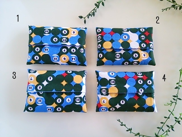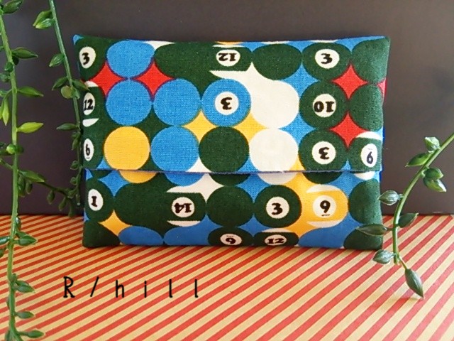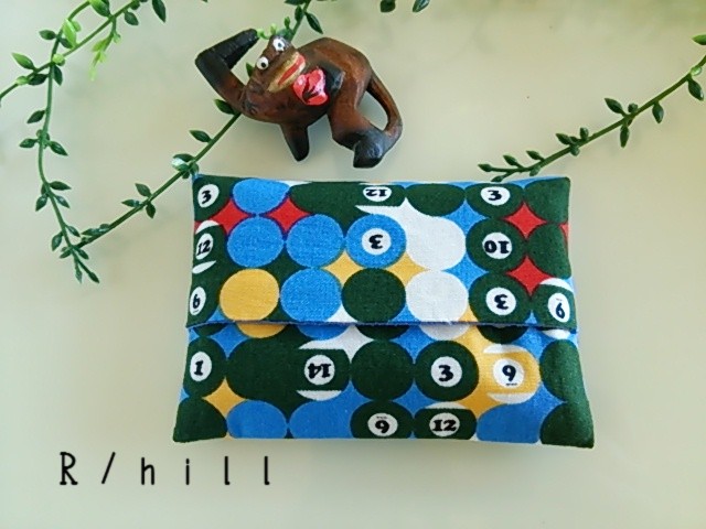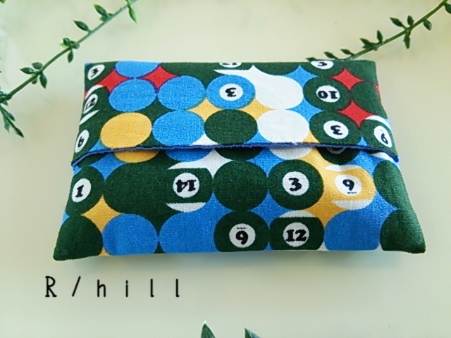 販売商品として完成している、ビリヤード柄のミニポケットティッシュケースの写真を撮ってみました。