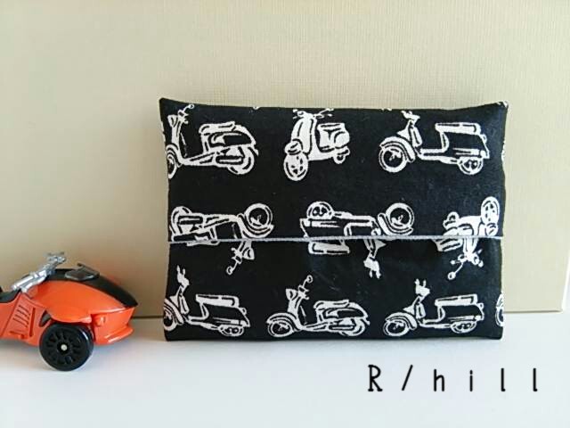 再販2!ミニポケットティッシュケース*リバーシブル*スクーター×ボーダー