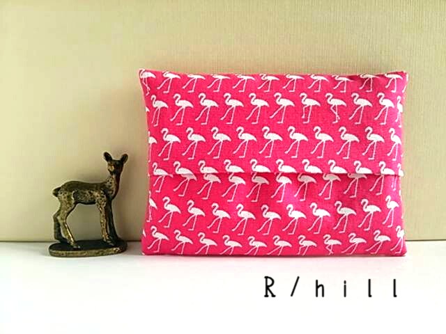 再販!ミニポケットティッシュケース*リバーシブル*フラミンゴ柄×ピンクダイヤ柄