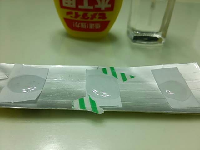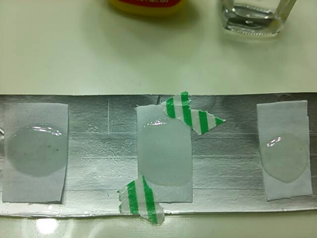 何もしないもの、ボンドを塗って乾かしたもの、トップコートを塗って乾かしたもの、を作りました。